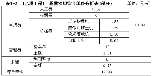 A.93元/m3,乙项综合单价的单价分析表见表7-2。当某一分项工程实际工程量比清单工程量增加超出10%时,应调整单价,超出部分的单价调整系数为0.9;当某一分项工程实际工程量比清单工程量减少10%以上时,对该分项工程的全部工程量调整单价,单价调整系数为1.1。