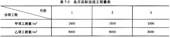 合同工期内,承包商每月实际完成并经工程师签证确认的工程量如表7-3所列。